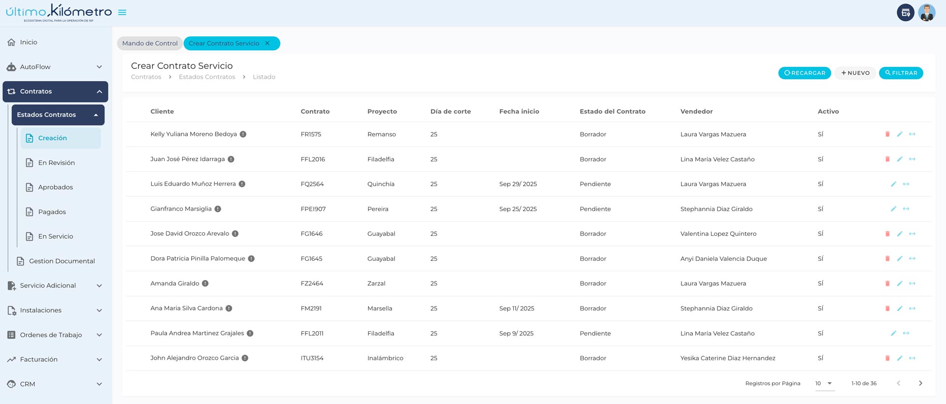Gestione de forma integral los contratos de sus clientes, centralizando toda la información clave en un solo lugar: datos del titular, estado del contrato, condiciones de instalación, ubicación georreferenciada y observaciones relevantes.