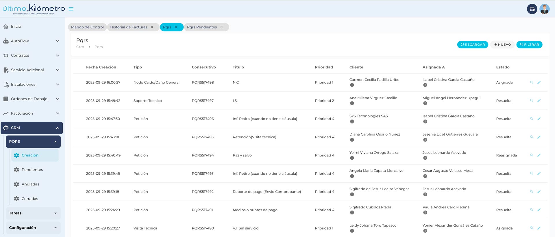 El CRM de Último Kilómetro integra en un único espacio la gestión de PQRS y tareas permitiendo registrar solicitudes de clientes, asignar responsables y darles seguimiento junto con el control de las actividades internas. Con trazabilidad, prioridades y avances visibles, el equipo asegura una atención ágil y transparente al cliente, al tiempo que mantiene eficiencia y cumplimiento en la operación.